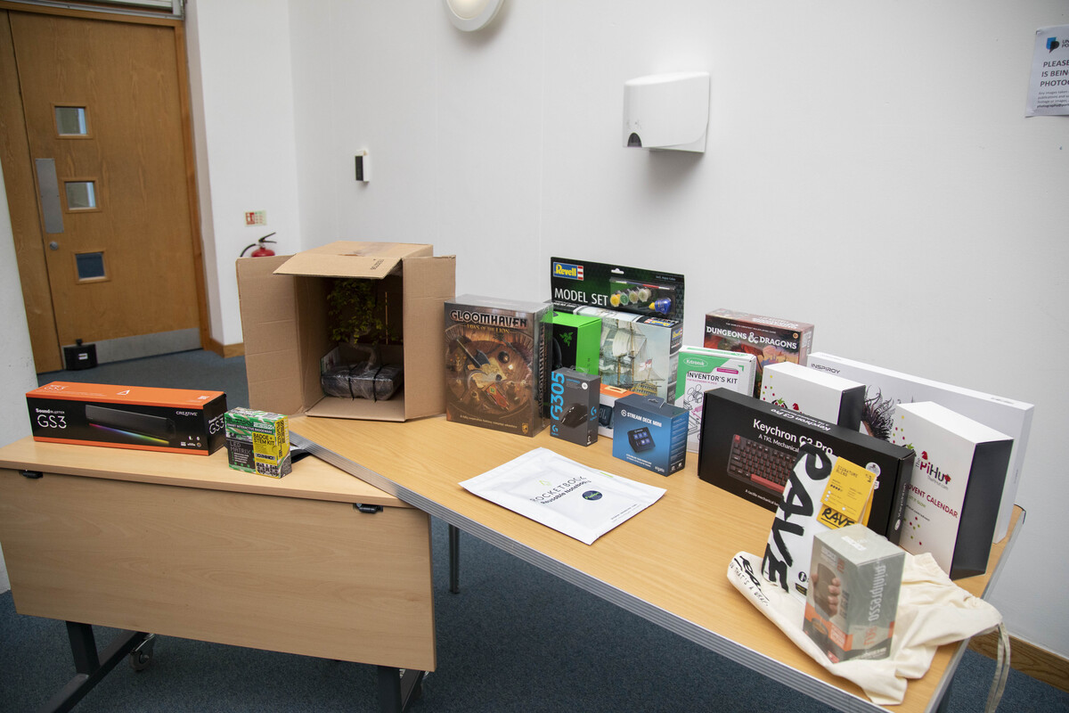 This year’s prizes were an exciting and eclectic mix, including some absurdly heavy boardgames, excellent gaming peripherals, a Raspberry Pi advent calendar leftover from the last event, a drawing tablet, microcontroller kits, and something we’re particularly proud of this time, a Bonsai Tree!? How’s that for deskware! There was something for every kind of hacker, all made possible thanks to our generous sponsors.